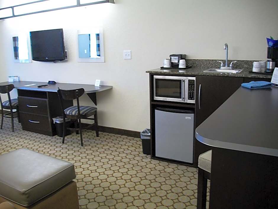 This suite features air conditioning, a seating area, and cable TV. A microwave and small refrigerator are also provided.